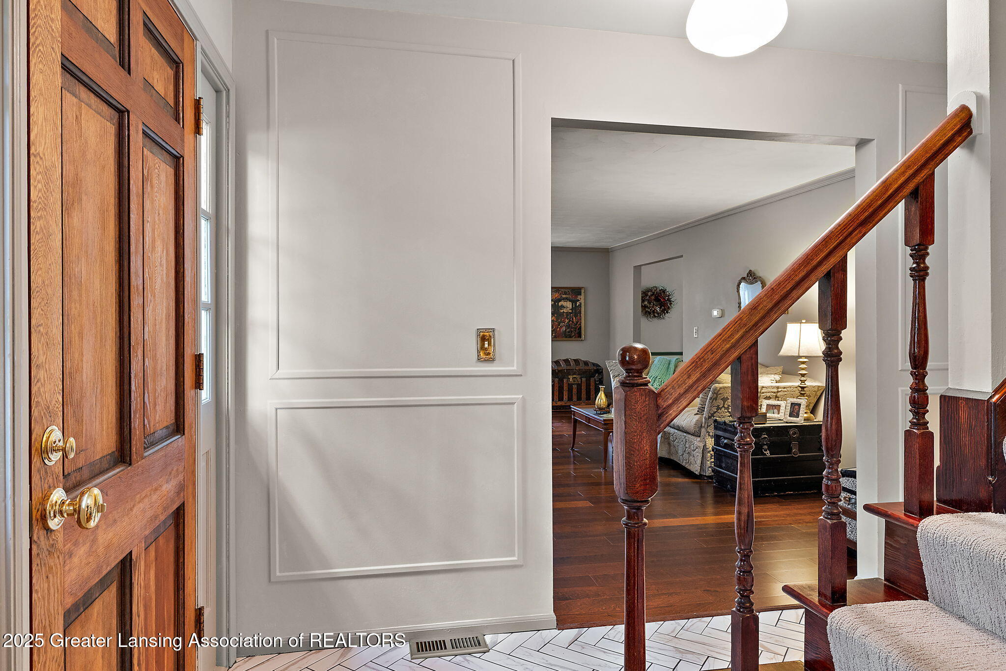 Welcome home to 1875 Penobscot Drive, a beautifully updated traditional home situated on a spacious corner lot in a quiet, close-knit neighborhood. Featuring 4 bedrooms and 2.5 bathrooms, this home offers a warm blend of classic charm and modern updates. As you come in the front entryway you are greeted with stunning tile that flows seamlessly into the kitchen and gorgeous engineered hardwood through the formal living room and dining room. The updated kitchen shines with stainless steel appliances and flows effortlessly into the dining room. Enjoy the warmth and ambiance of two fireplaces - one in the family room and the other upstairs in the primary ensuite, featuring a stunning custom tile & wood mantle. The luxurious primary bedroom offers a walk-in closet & spacious ensuite, complete marble tiling throughout. There are 3 additional large bedrooms and another full bathroom, updated with tile as well. Downstairs the finished basement has an ample third recreational/living space, plenty of storage and a generously sized laundry room. Additional features include in-home central vacuum, solar panels on rear of home, furnace and AC replace in 2016 and newer roof (2014). This neighborhood is known for its community spirit, hosting a festive 4th of July bike parade and glowing Christmas luminaries each year. There is no need to look further, this is the home for you! Stop by to see it today because it won't last long!