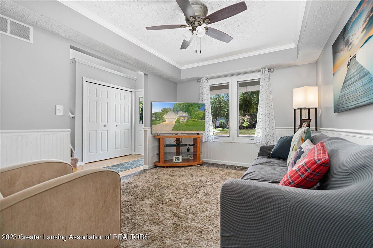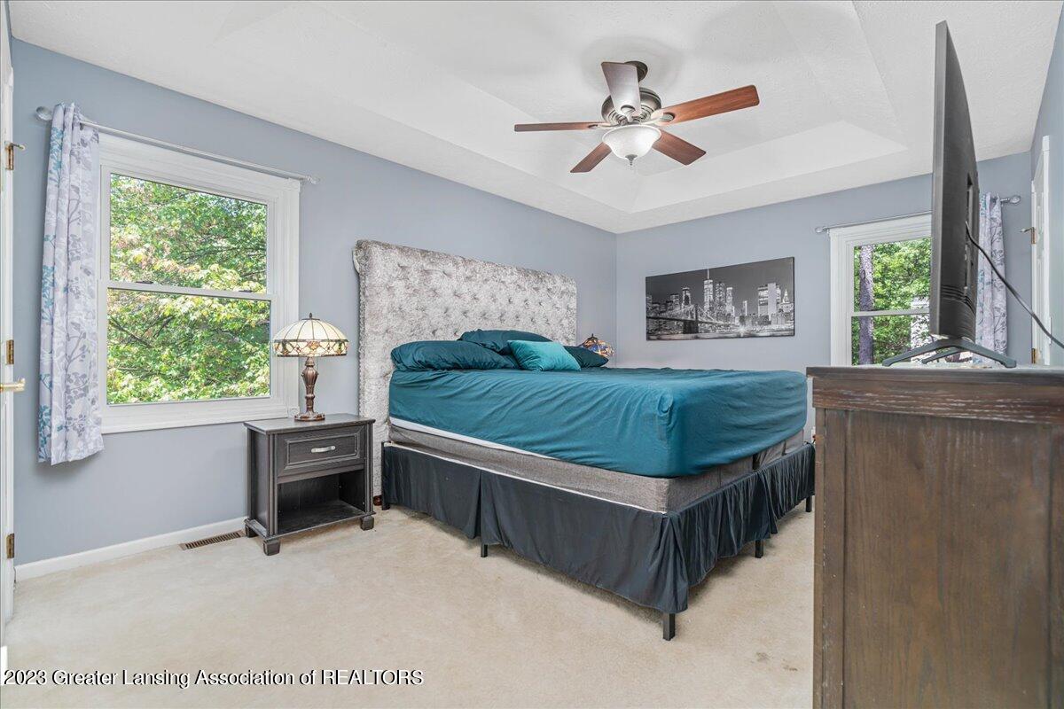 Great backyard on a large corner lot with mature trees all accessible by a large deck. The fully finished basement with daylight window provides incredible extra living space and a half bath. The main floor features a convenient dine-in kitchen, large living room, a flex room for formal dining or an office and a great laundry/mudroom with half bath! Upstairs are three large guest rooms and full bath. The primary suite features a large bedroom with walk-in closet and a beautiful full bath.