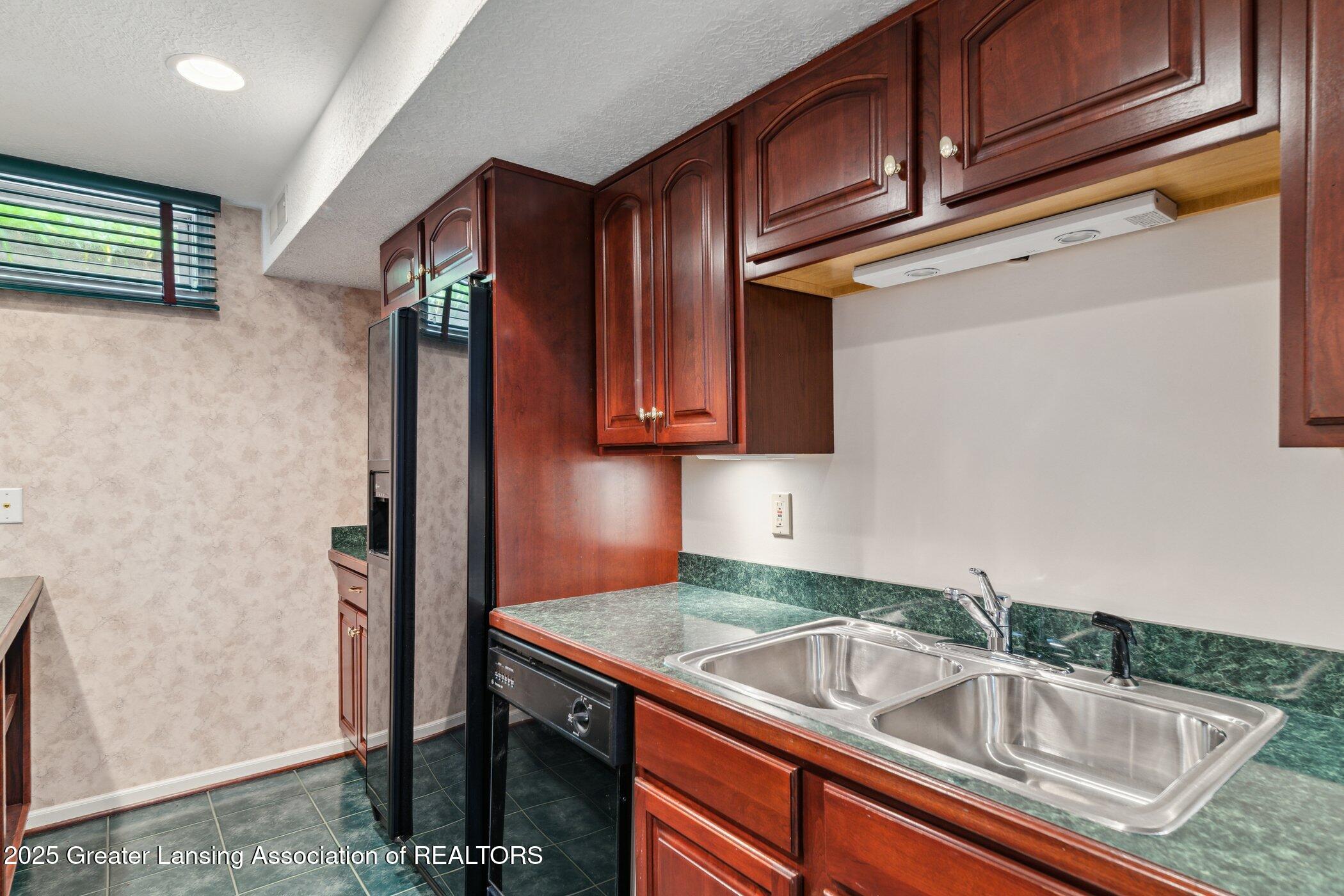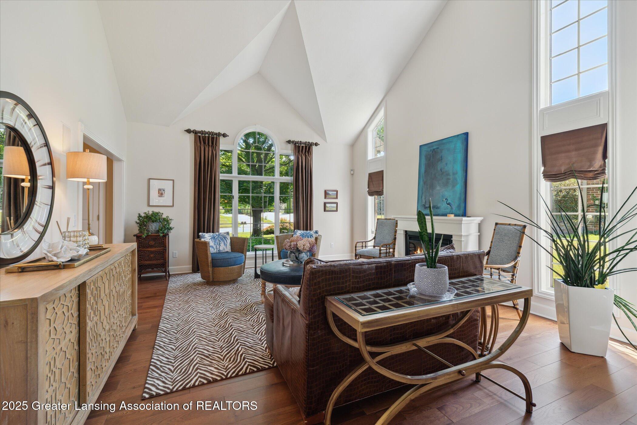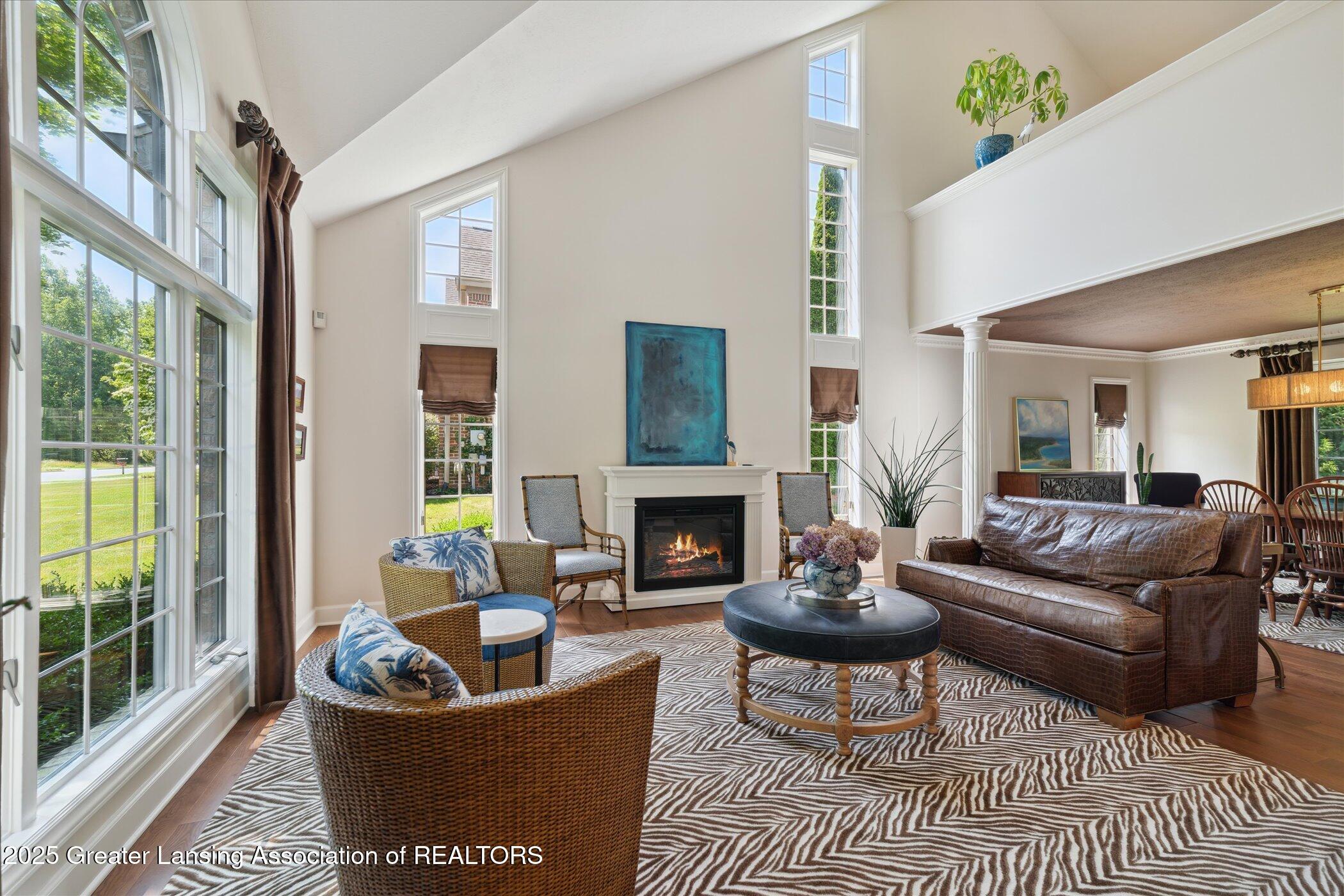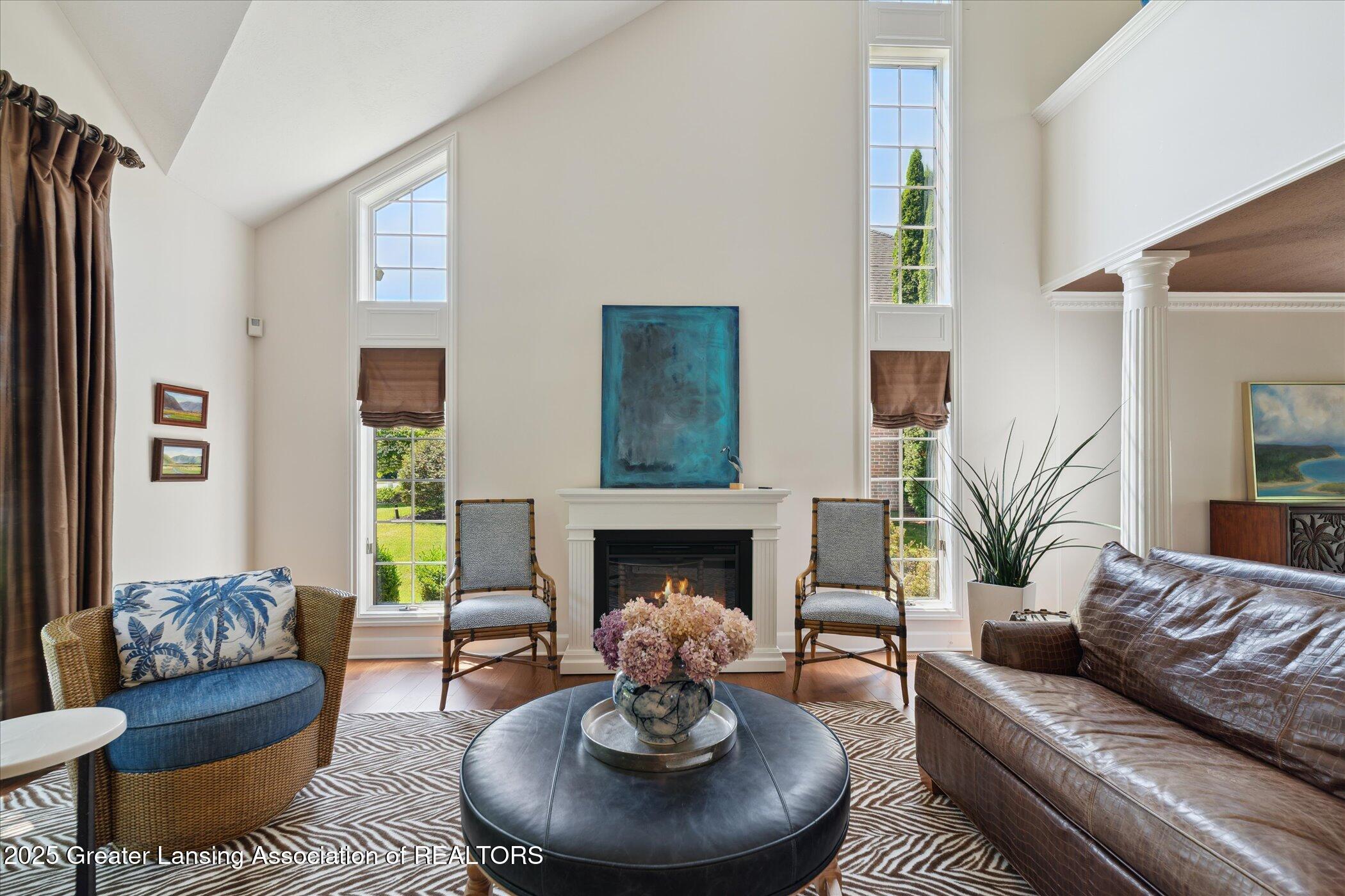 Formal living/dining has cathedral ceiling, separate loft, tons of light, custom silk blinds/curtains. Powder room has full-wall mirror, upscale, neutral wallpaper. Main floor laundry has ample storage, new quartz, sink, and washer/dryer 6/25.