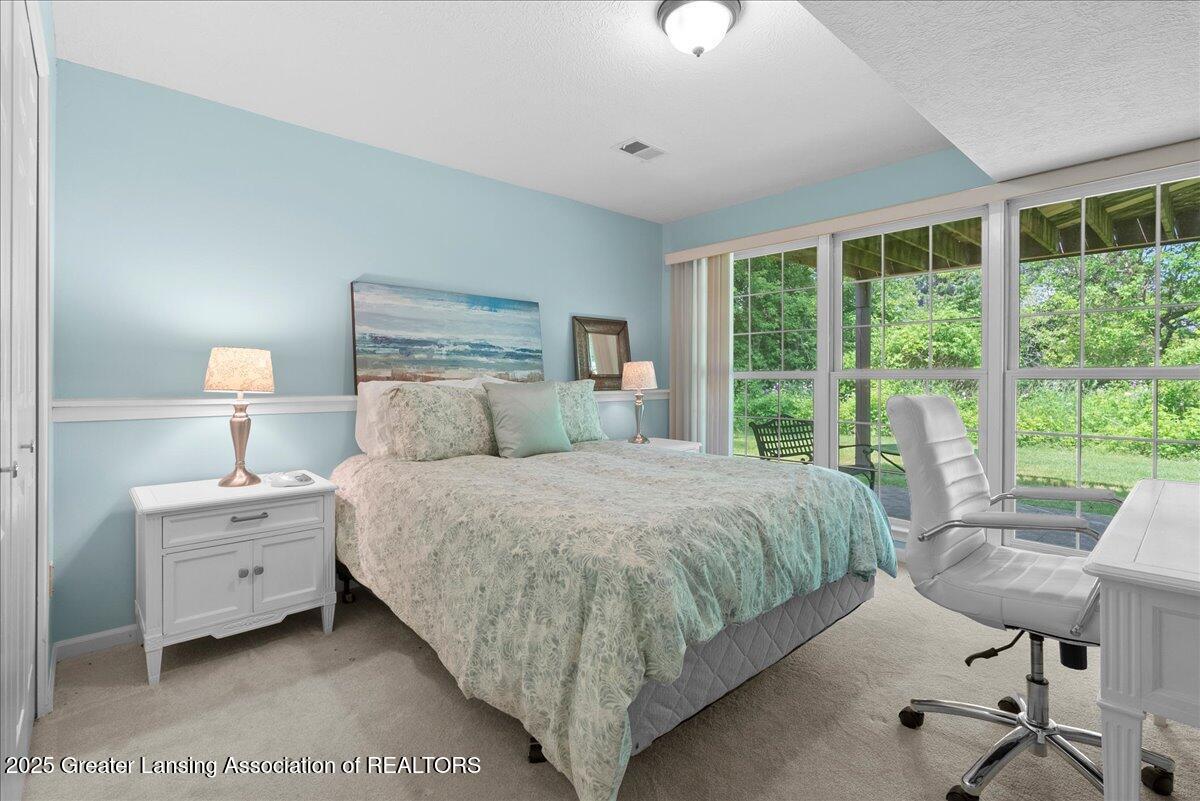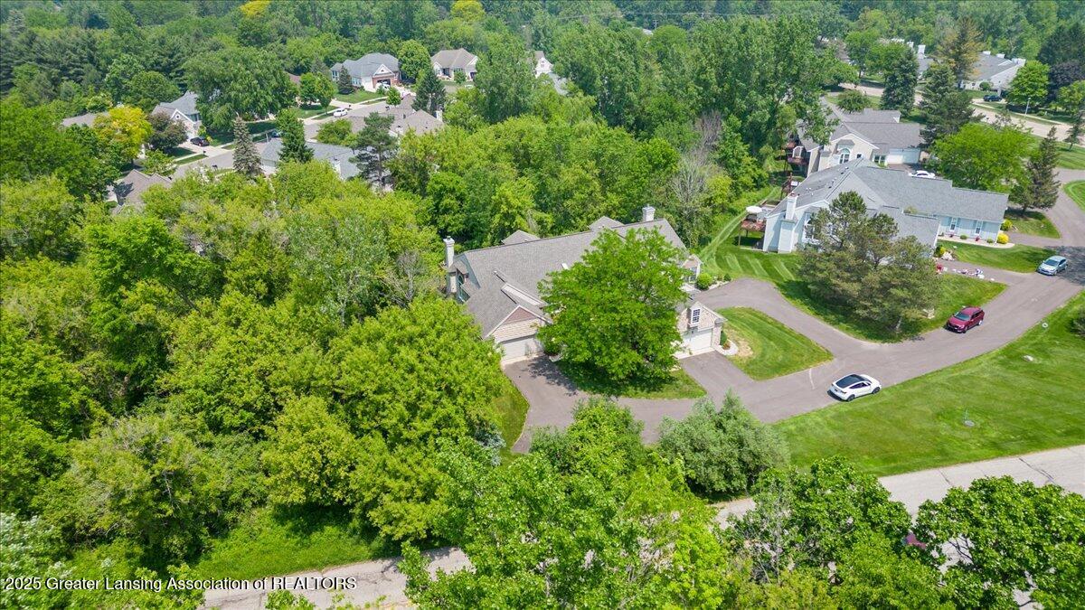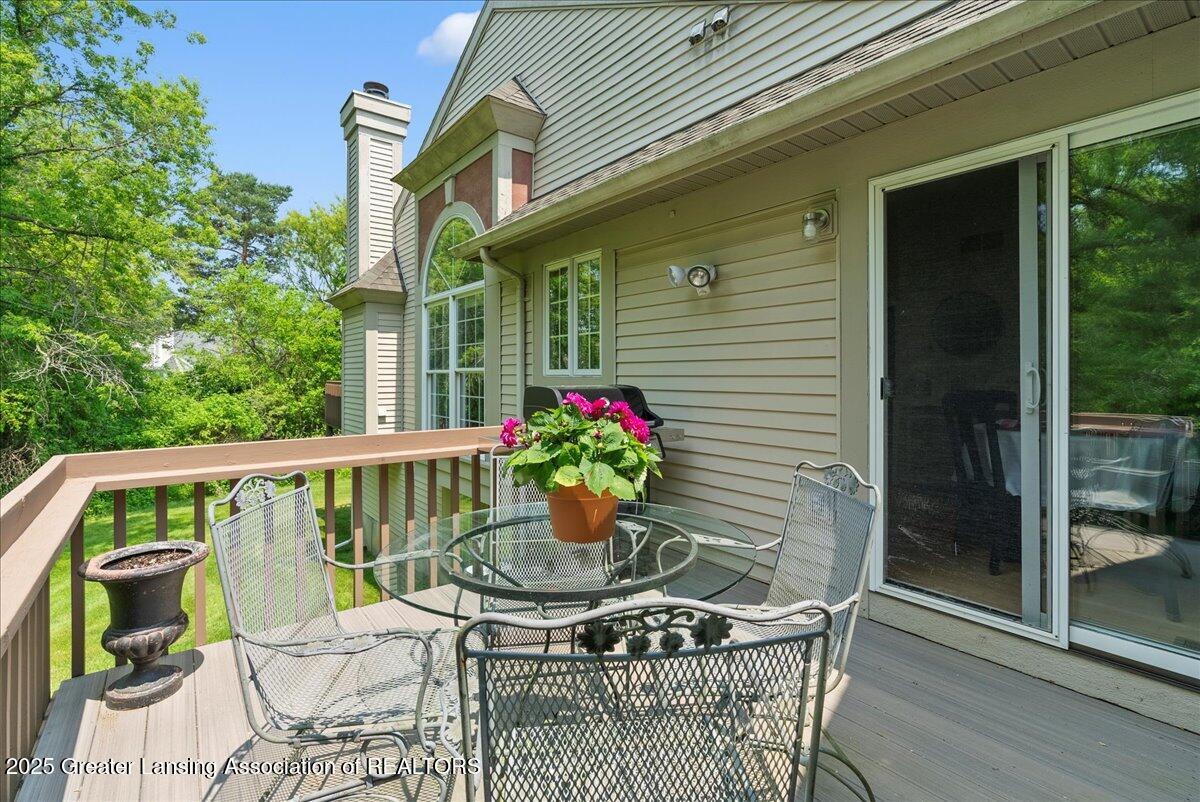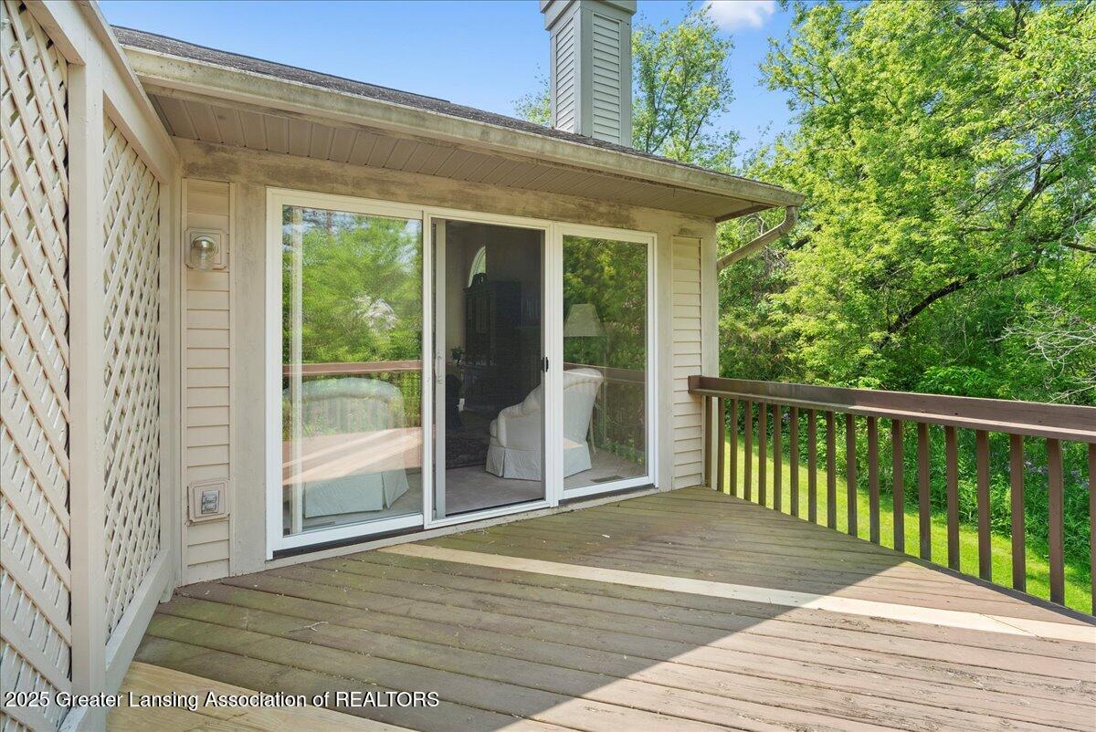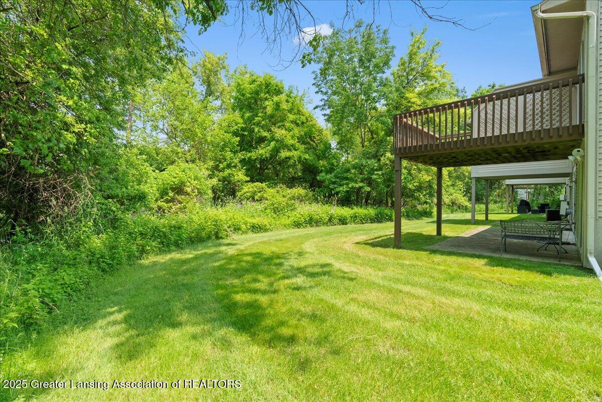 Welcome 5629 Bayonne Ave in Haslett, a private, peaceful 3-bedroom, 2.5-bath condo in the highly desirable Pine Creek community. Perfectly positioned at the end of a long driveway, this end-unit offers rare seclusion with wooded views on two sides, lush green space in front, and multiple decks for enjoying the scenery. Inside, you'll love the airy feel created by vaulted ceilings, abundant natural light, and a thoughtful layout. The main level includes a versatile front study with a full-size closet and direct access to the half bath, ideal as a home office or easily transformed into a 4th bedroom. The spacious primary suite boasts a luxurious en-suite bath with a large soaking tub, walk-in shower, and ample storage. A convenient stacked washer and dryer on the main floor handles everyday laundry, while full-size units on the lower level are perfect for larger loads. The finished walk-out lower level adds exceptional living space with a cozy family room (featuring a second fireplace), two generous bedrooms, a full bath with walk-in shower, a large laundry room with utility tub, and a bonus storage room with built-in shelving. Step outside to a private backyard patio or explore the nearby nature trail just a half block away, a favorite for dog walks and peaceful strolls. Don't miss your chance to own this hidden gem with the perfect blend of comfort, flexibility, and privacy. Schedule your showing today!