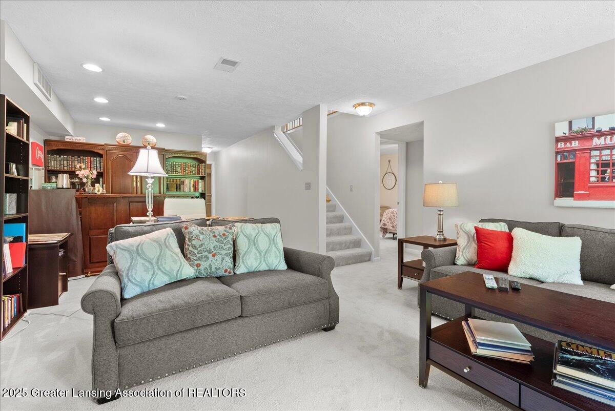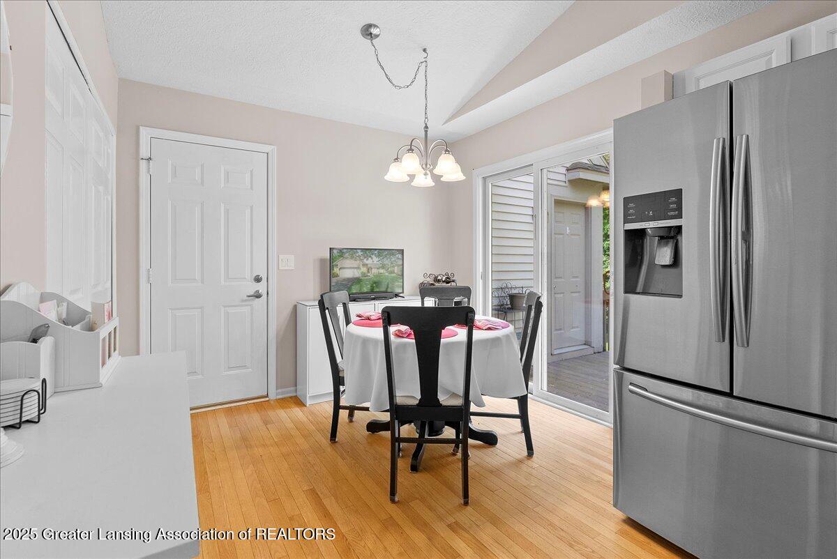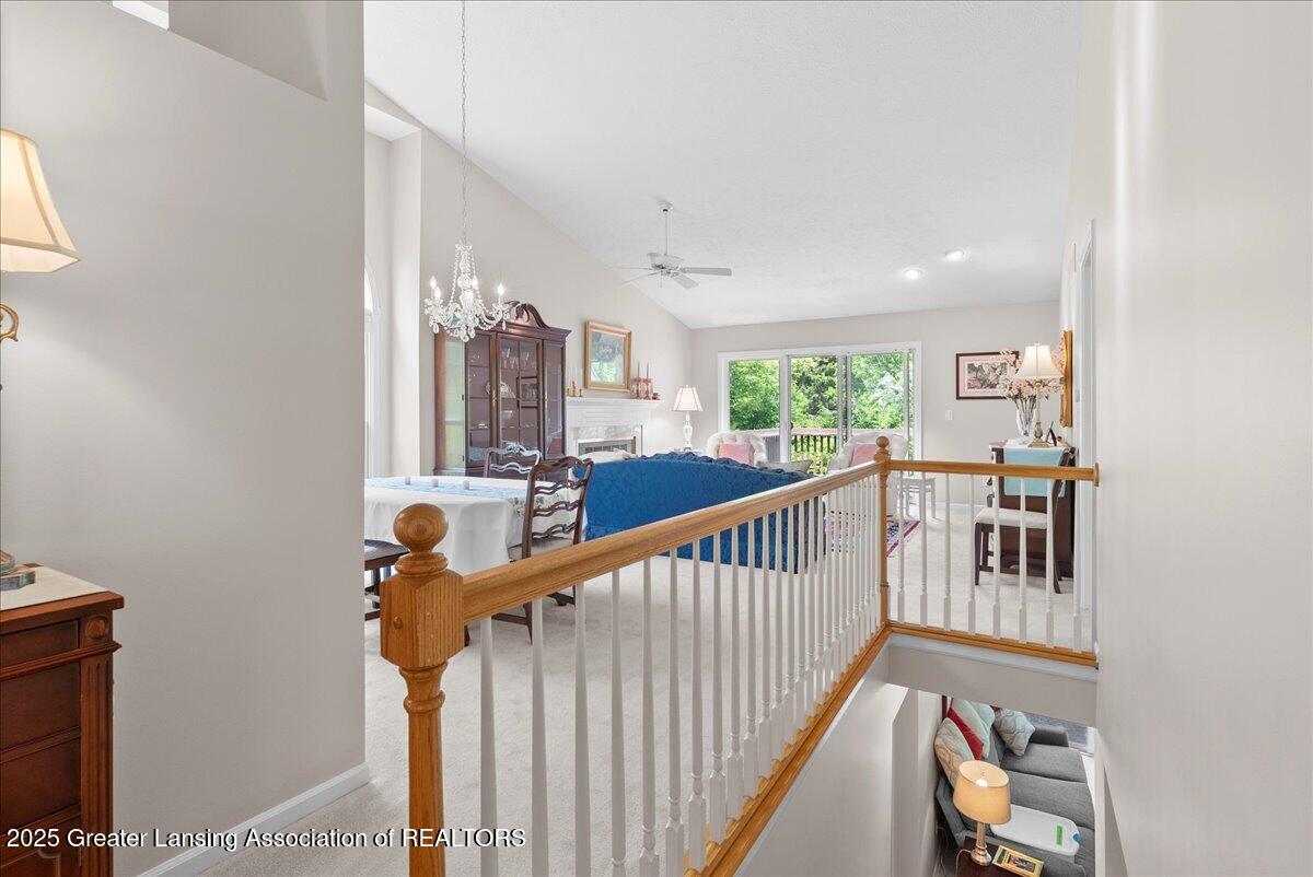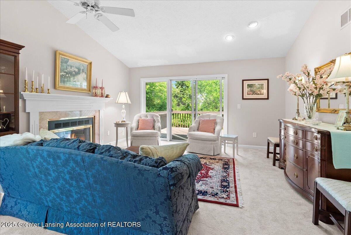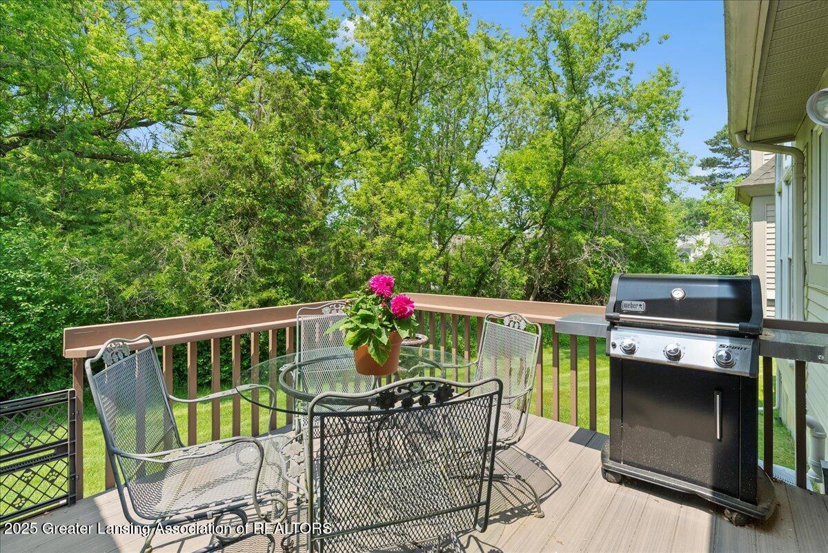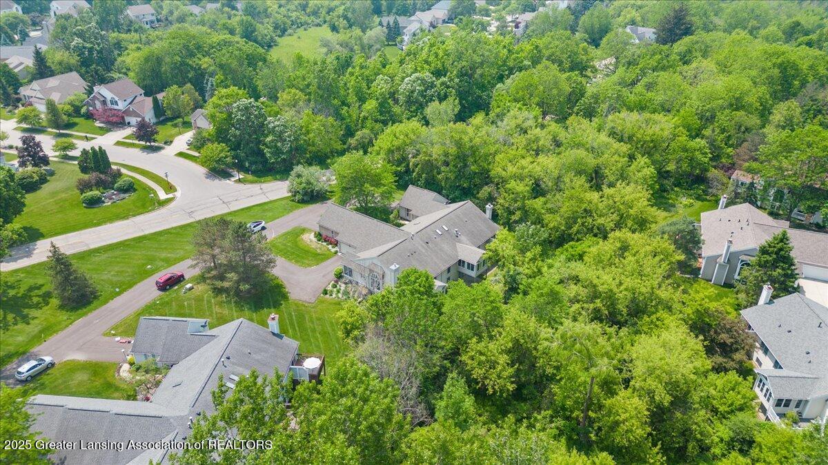 Welcome 5629 Bayonne Ave in Haslett, a private, peaceful 3-bedroom, 2.5-bath condo in the highly desirable Pine Creek community. Perfectly positioned at the end of a long driveway, this end-unit offers rare seclusion with wooded views on two sides, lush green space in front, and multiple decks for enjoying the scenery. Inside, you'll love the airy feel created by vaulted ceilings, abundant natural light, and a thoughtful layout. The main level includes a versatile front study with a full-size closet and direct access to the half bath, ideal as a home office or easily transformed into a 4th bedroom. The spacious primary suite boasts a luxurious en-suite bath with a large soaking tub, walk-in shower, and ample storage. A convenient stacked washer and dryer on the main floor handles everyday laundry, while full-size units on the lower level are perfect for larger loads. The finished walk-out lower level adds exceptional living space with a cozy family room (featuring a second fireplace), two generous bedrooms, a full bath with walk-in shower, a large laundry room with utility tub, and a bonus storage room with built-in shelving. Step outside to a private backyard patio or explore the nearby nature trail just a half block away, a favorite for dog walks and peaceful strolls. Don't miss your chance to own this hidden gem with the perfect blend of comfort, flexibility, and privacy. Schedule your showing today!