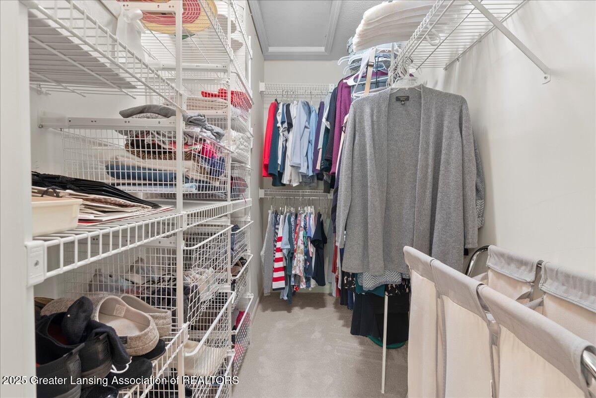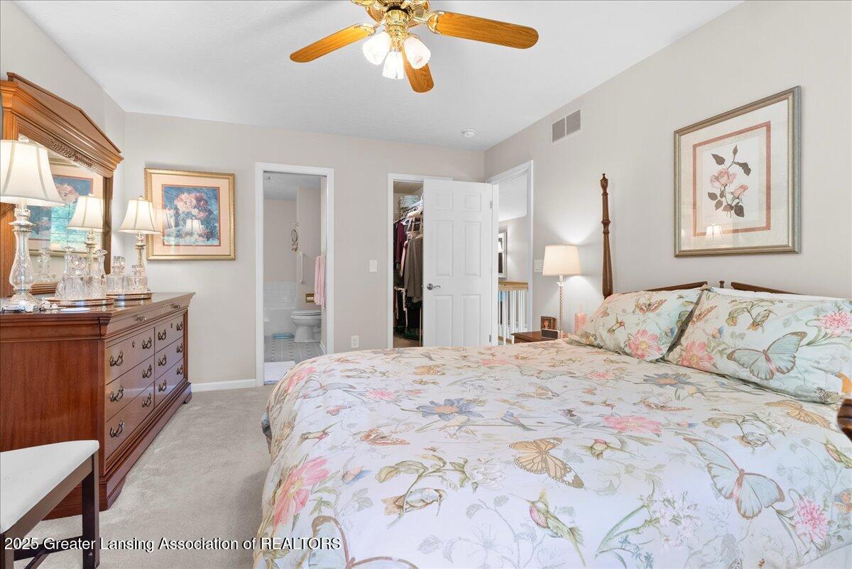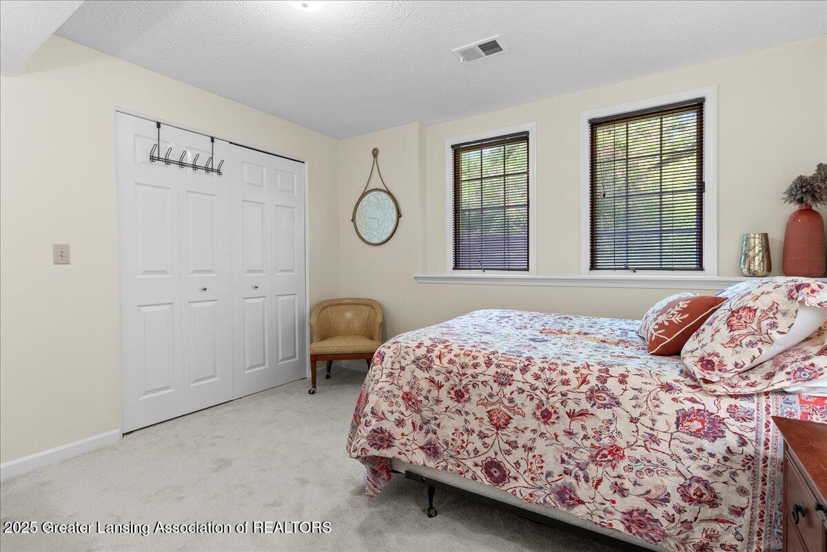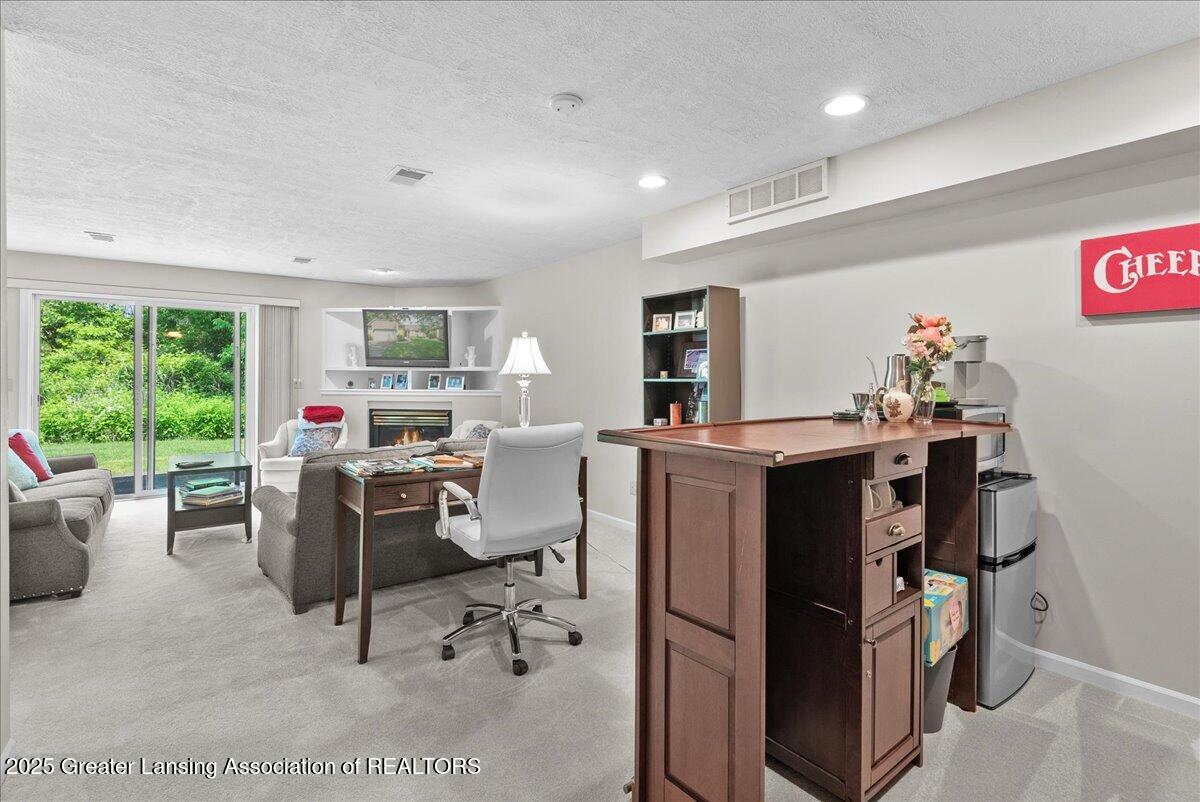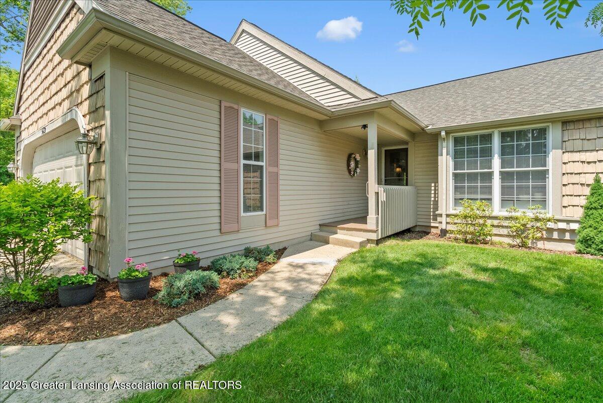 Welcome 5629 Bayonne Ave in Haslett, a private, peaceful 3-bedroom, 2.5-bath condo in the highly desirable Pine Creek community. Perfectly positioned at the end of a long driveway, this end-unit offers rare seclusion with wooded views on two sides, lush green space in front, and multiple decks for enjoying the scenery. Inside, you'll love the airy feel created by vaulted ceilings, abundant natural light, and a thoughtful layout. The main level includes a versatile front study with a full-size closet and direct access to the half bath, ideal as a home office or easily transformed into a 4th bedroom. The spacious primary suite boasts a luxurious en-suite bath with a large soaking tub, walk-in shower, and ample storage. A convenient stacked washer and dryer on the main floor handles everyday laundry, while full-size units on the lower level are perfect for larger loads. The finished walk-out lower level adds exceptional living space with a cozy family room (featuring a second fireplace), two generous bedrooms, a full bath with walk-in shower, a large laundry room with utility tub, and a bonus storage room with built-in shelving. Step outside to a private backyard patio or explore the nearby nature trail just a half block away, a favorite for dog walks and peaceful strolls. Don't miss your chance to own this hidden gem with the perfect blend of comfort, flexibility, and privacy. Schedule your showing today!