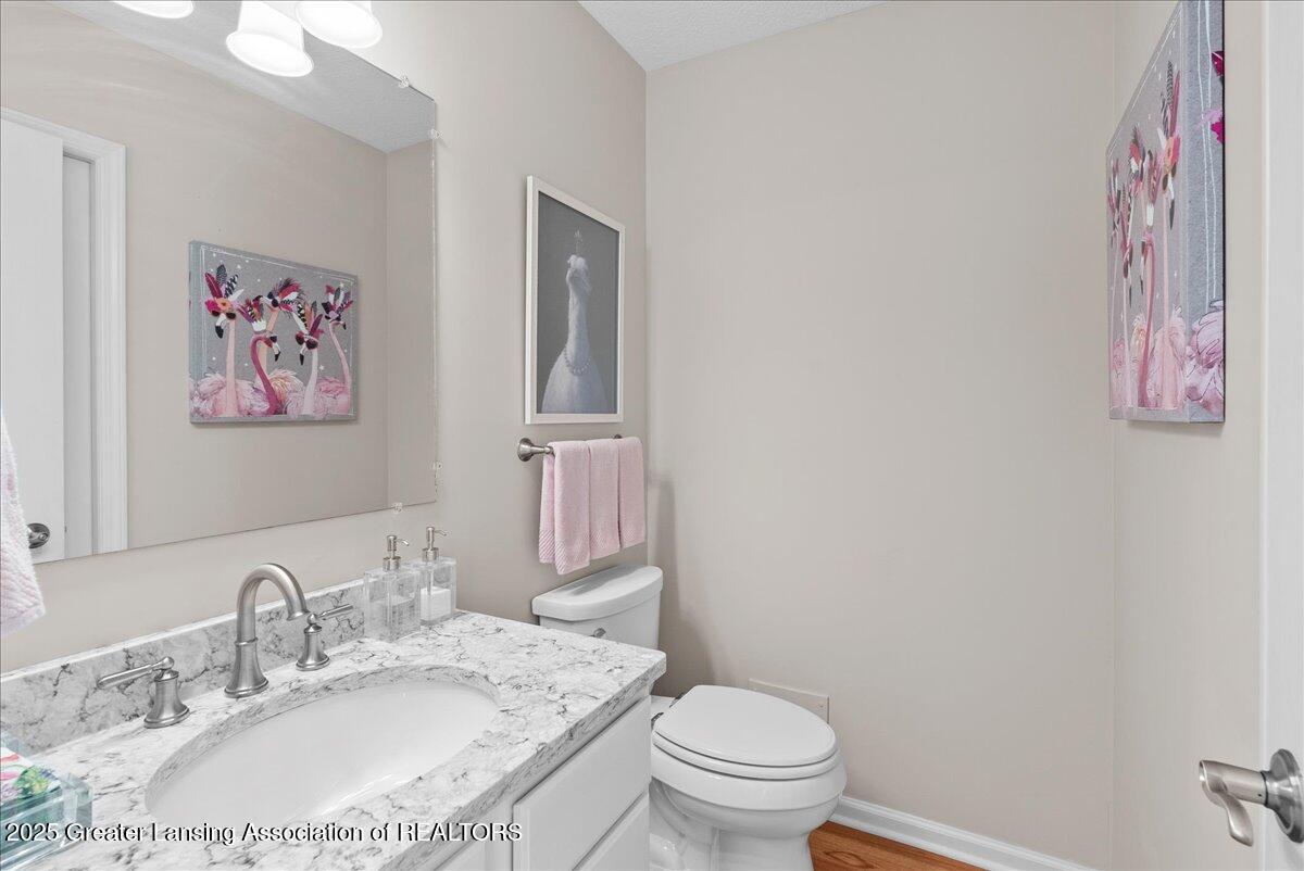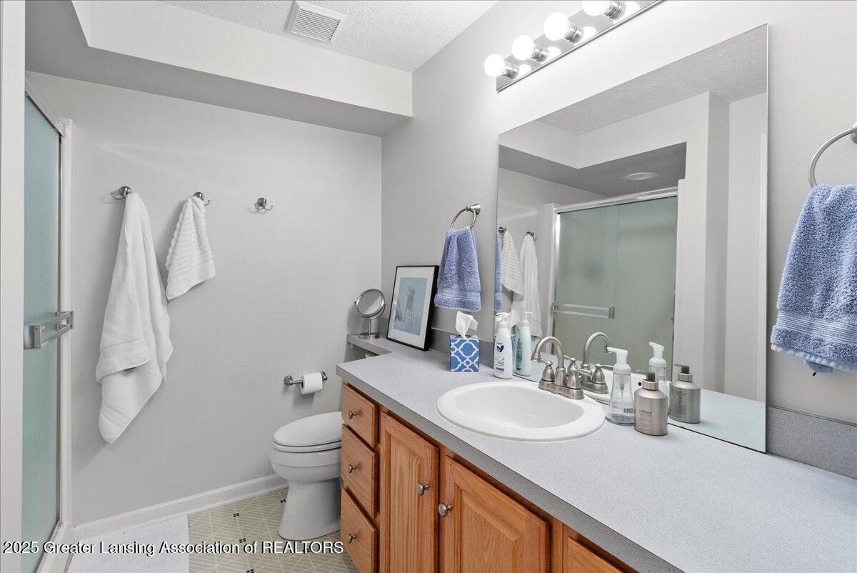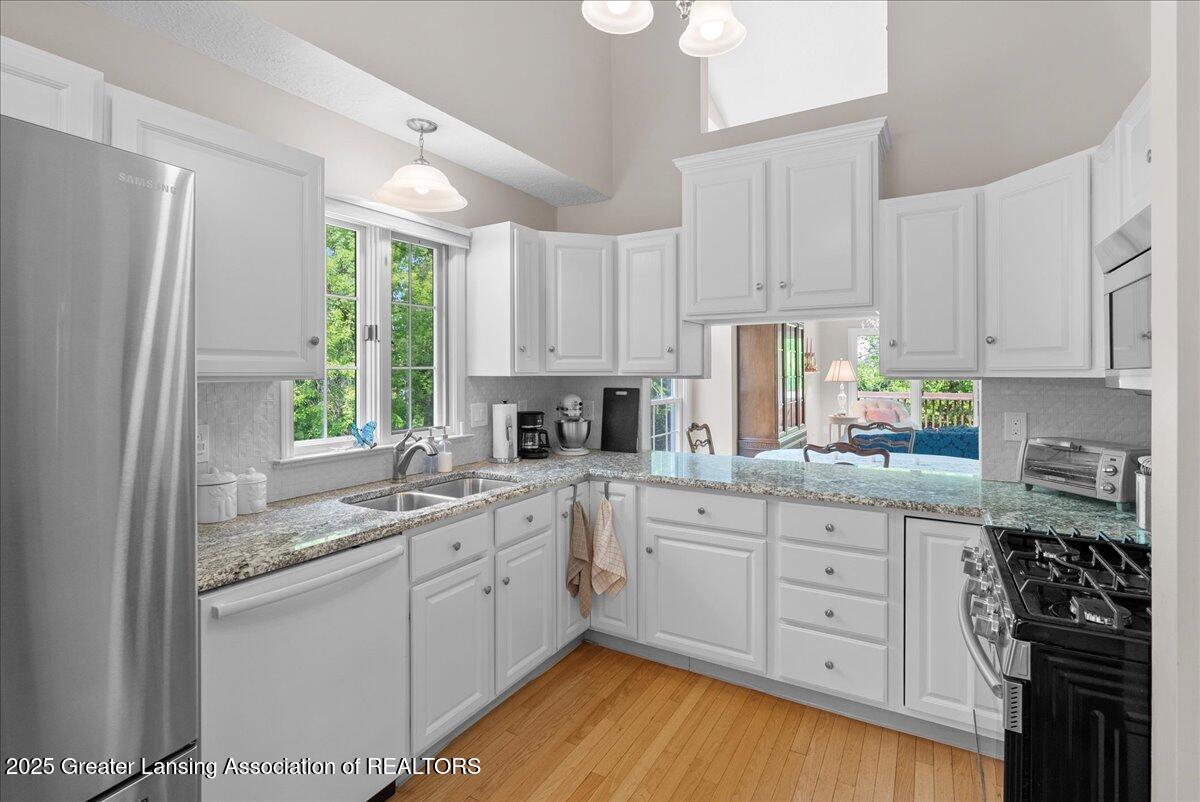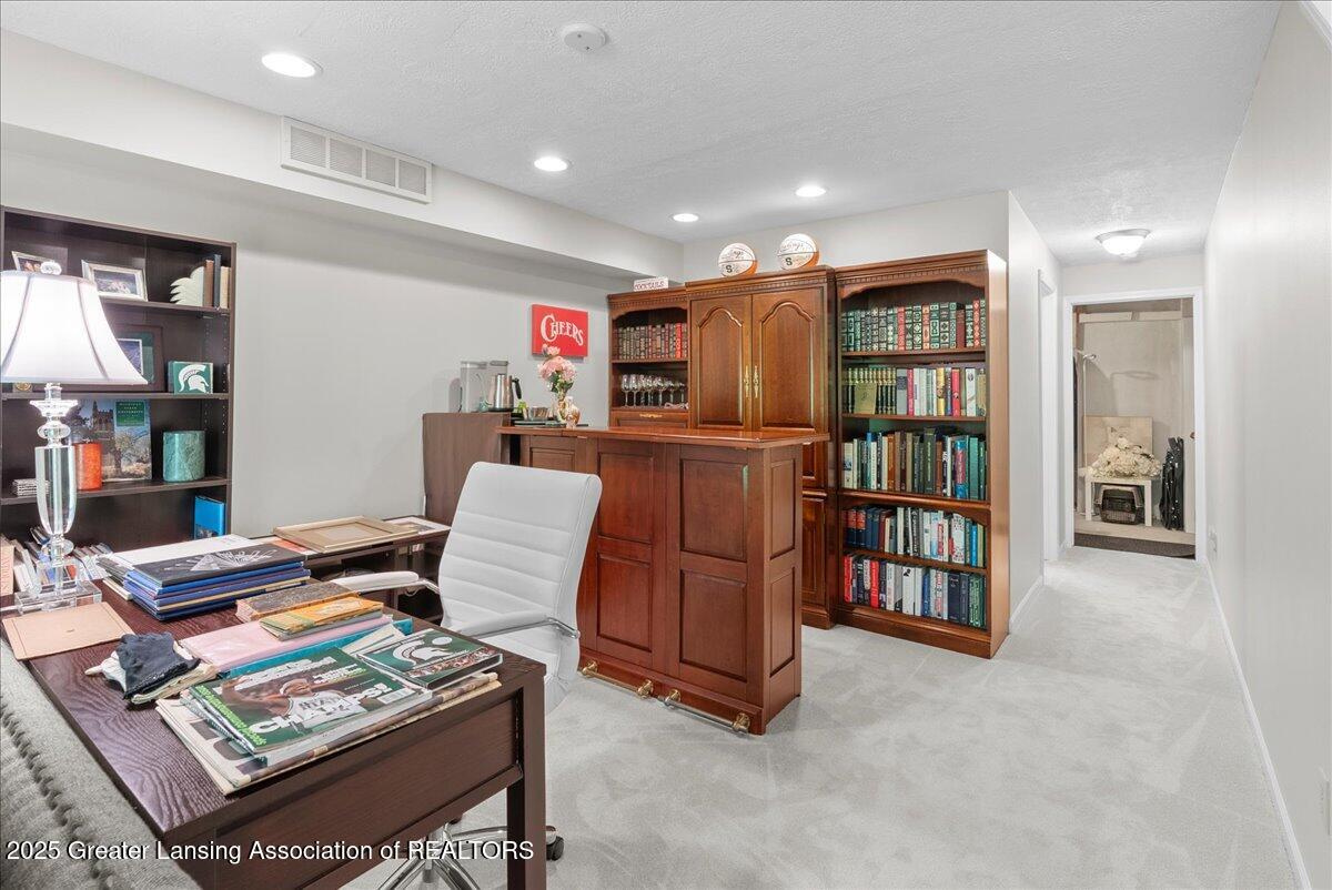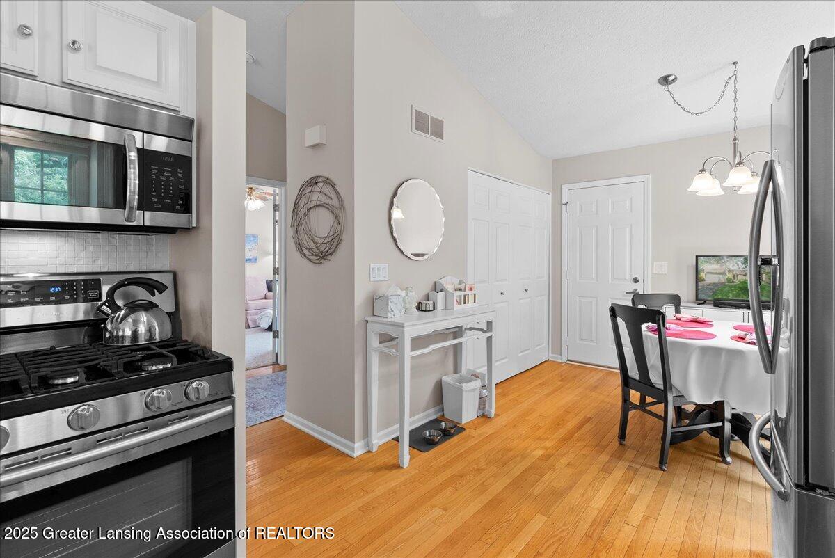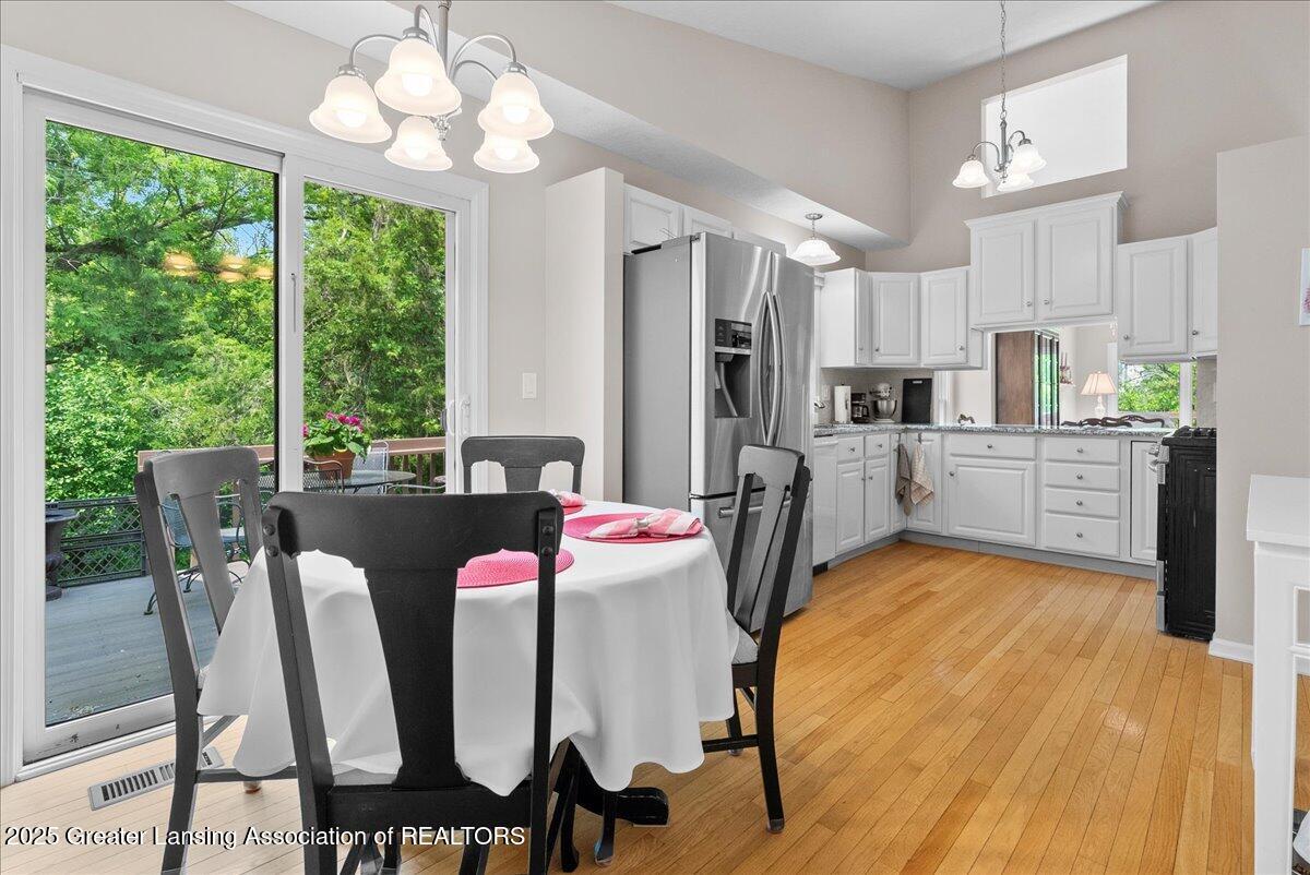 Welcome 5629 Bayonne Ave in Haslett, a private, peaceful 3-bedroom, 2.5-bath condo in the highly desirable Pine Creek community. Perfectly positioned at the end of a long driveway, this end-unit offers rare seclusion with wooded views on two sides, lush green space in front, and multiple decks for enjoying the scenery. Inside, you'll love the airy feel created by vaulted ceilings, abundant natural light, and a thoughtful layout. The main level includes a versatile front study with a full-size closet and direct access to the half bath, ideal as a home office or easily transformed into a 4th bedroom. The spacious primary suite boasts a luxurious en-suite bath with a large soaking tub, walk-in shower, and ample storage. A convenient stacked washer and dryer on the main floor handles everyday laundry, while full-size units on the lower level are perfect for larger loads. The finished walk-out lower level adds exceptional living space with a cozy family room (featuring a second fireplace), two generous bedrooms, a full bath with walk-in shower, a large laundry room with utility tub, and a bonus storage room with built-in shelving. Step outside to a private backyard patio or explore the nearby nature trail just a half block away, a favorite for dog walks and peaceful strolls. Don't miss your chance to own this hidden gem with the perfect blend of comfort, flexibility, and privacy. Schedule your showing today!