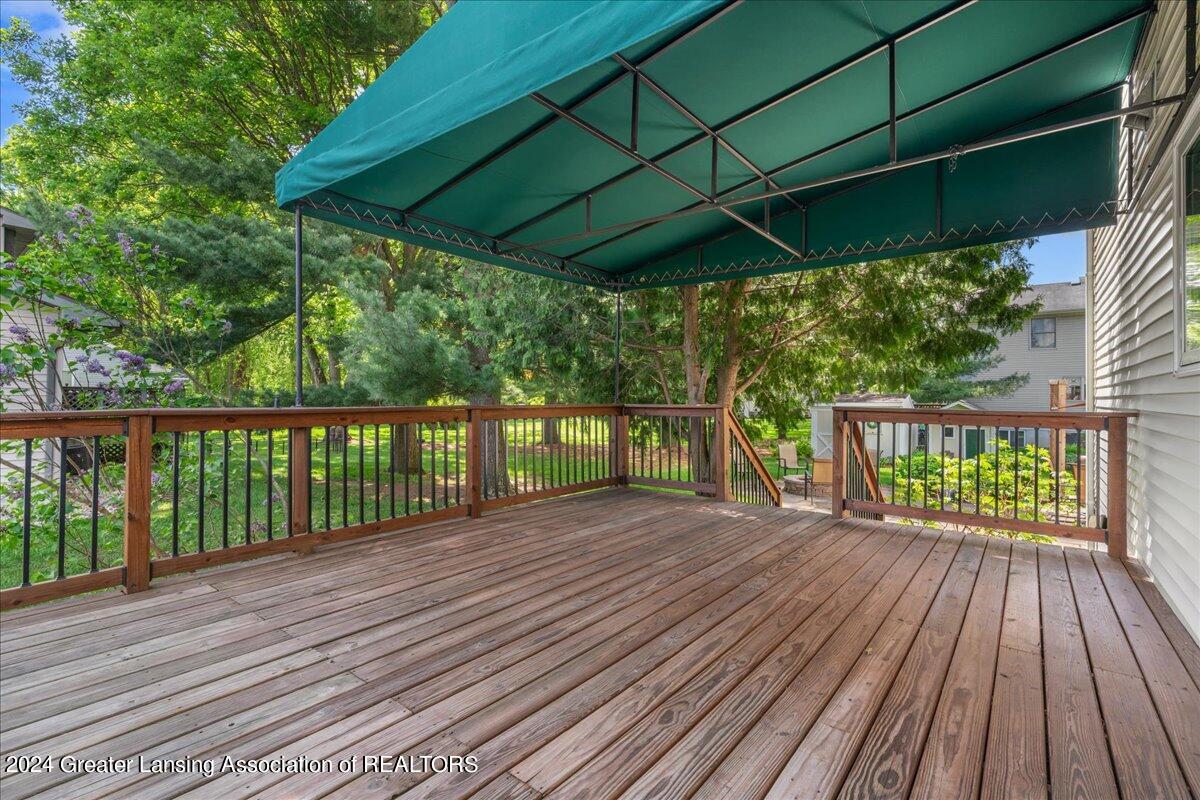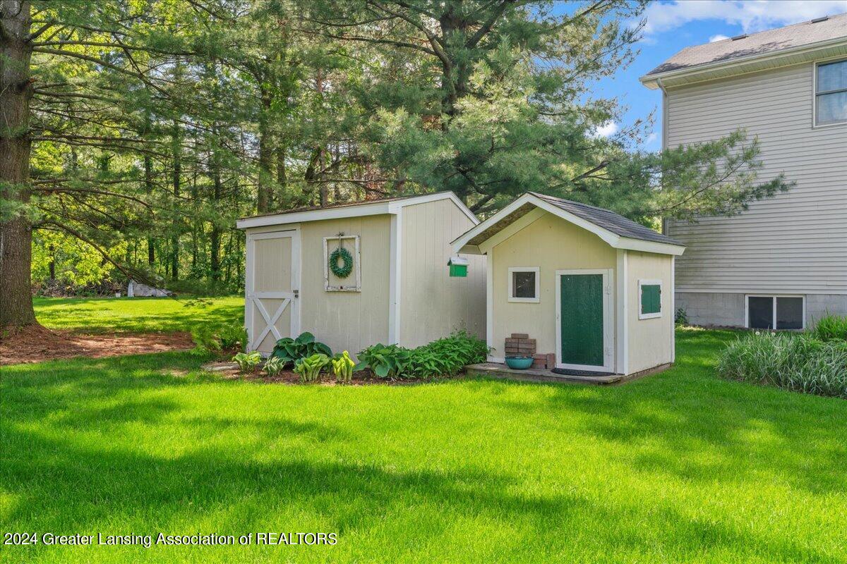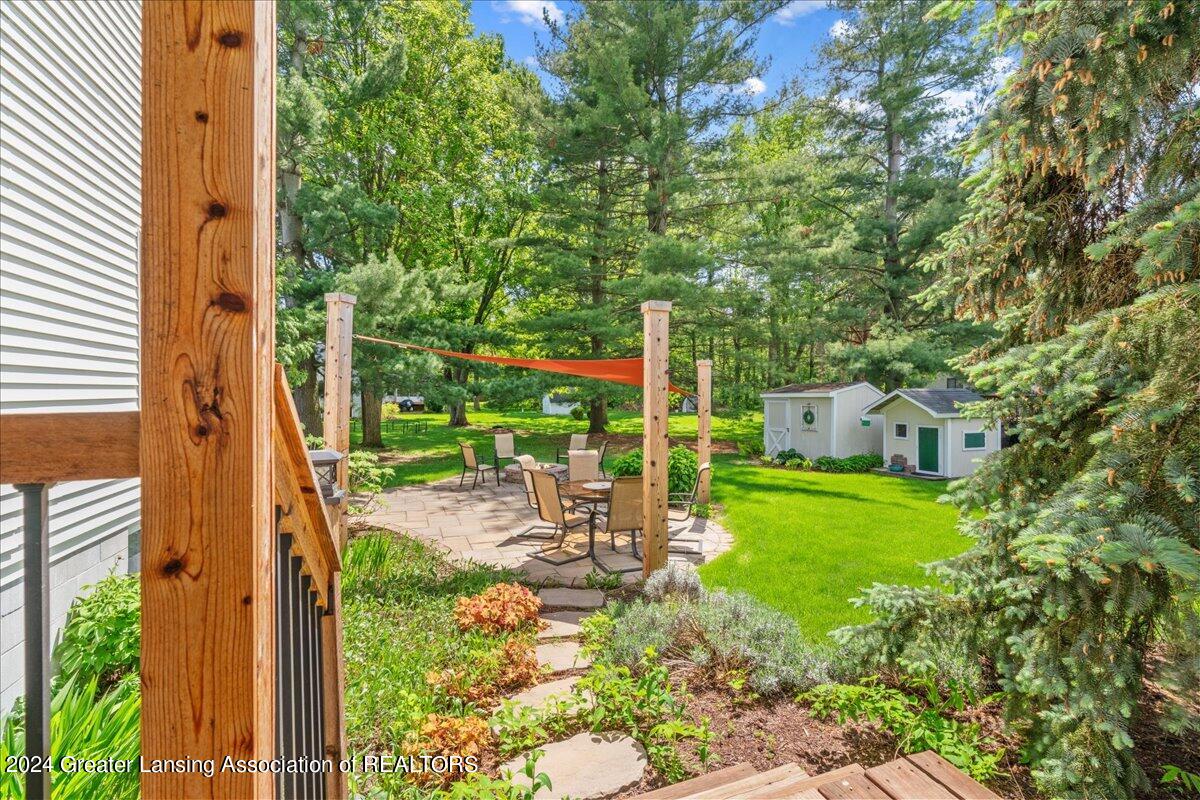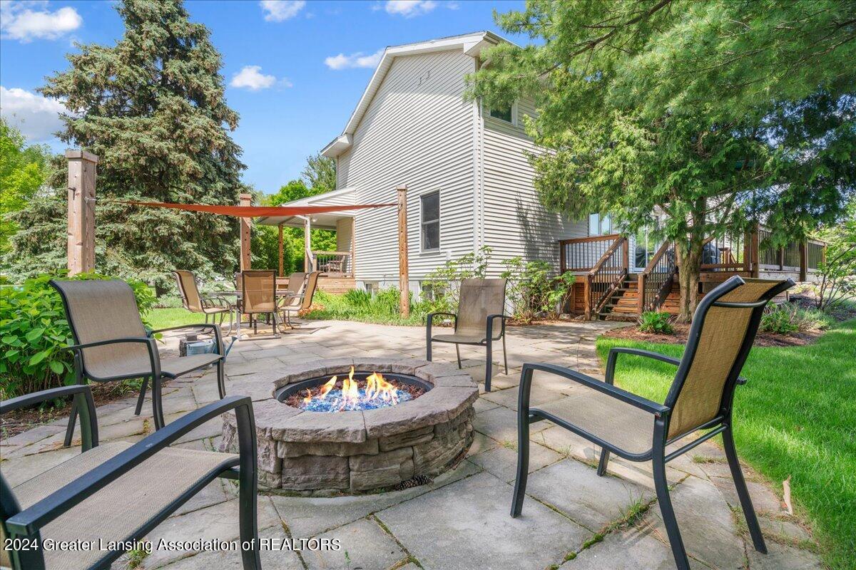Located in Holt Schools and tucked away on a quiet cul-de-sac, this home provides the perfect blend of tranquility and accessibility. With quick access to I-96, you're just moments away from all the excitement of the Greater Lansing Area. Step into your own private oasis with a meticulously manicured yard that's perfect for entertaining or simply relaxing. Whether you're enjoying the covered front porch, hosting gatherings on the spacious back deck under a charming shade awning, or gathering around the fire pit with natural gas for cozy evenings with loved ones, this outdoor space is sure to become your favorite retreat.
