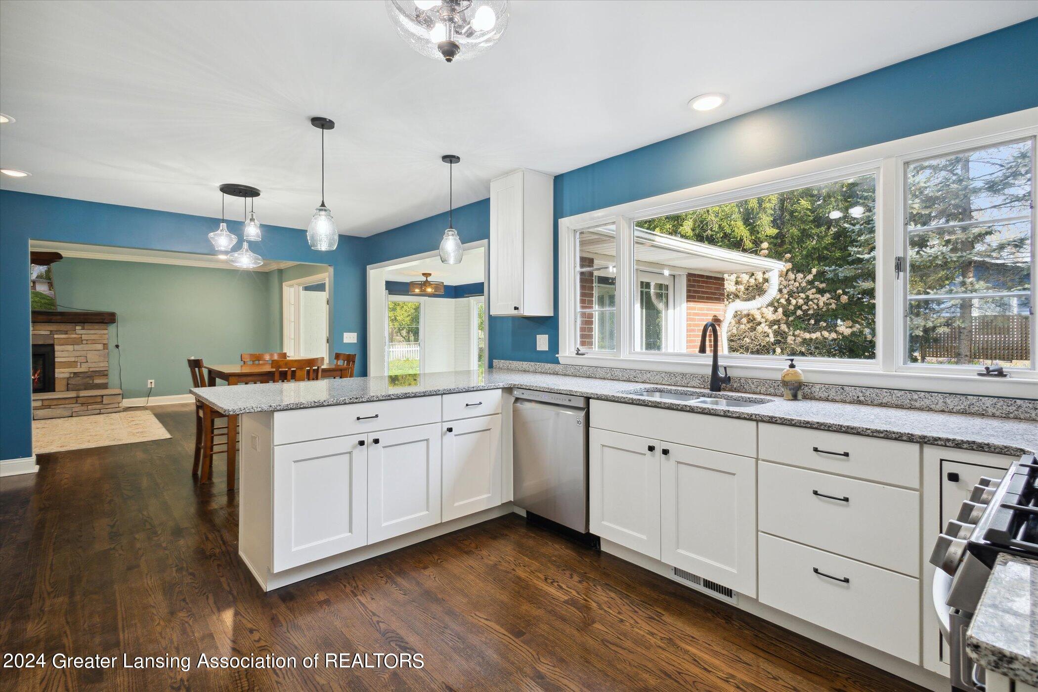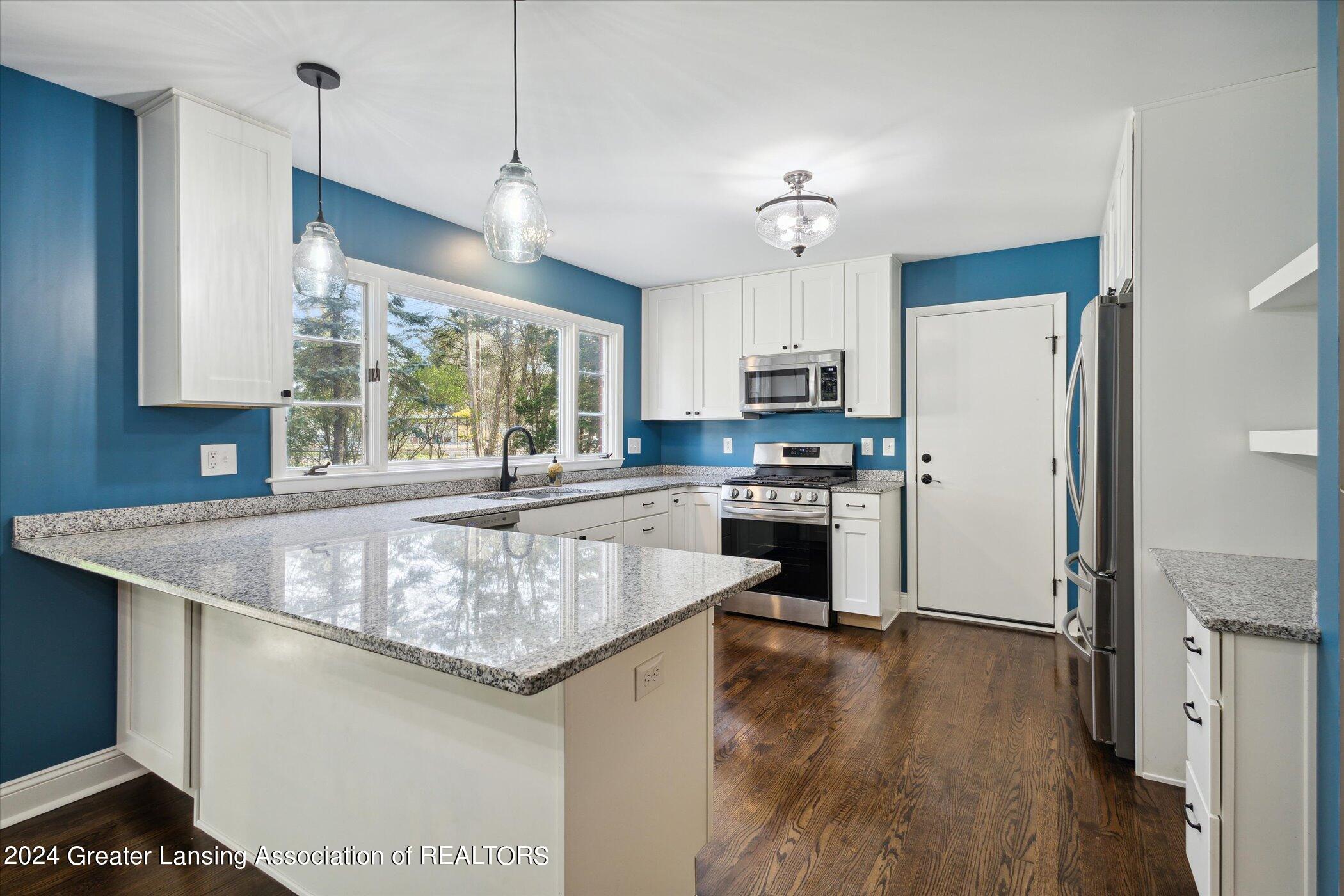 Welcome to 635 Greencroft! This updated 4 bedroom 1.5 bathroom house is move in ready and has plenty to offer. The house is located on a dead end street and is walking distance to Williamston Elementary schools and a short walk into downtown. As you walk into the home you will be greeted by beautiful hardwood floors that run throughout the house. There is a half bathroom and large first floor laundry room with an added bonus of a shower. As you continue through the house there is a beautiful eat in kitchen complete with granite countertops and stainless steel appliances. A large family room complete with gas fireplace, and a large four season room with in floor heating finish off the main level. Upstairs you will find 4 bedrooms and a beautifully updated bathroom. The unfinished basement is a blank canvas and ready for new owners to make it their own.